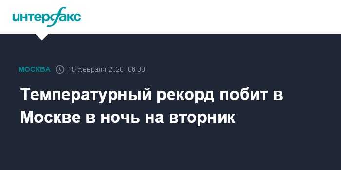 Москва. 18 февраля. INTERFAX.RU - Главная метеостанция столицы на ВДНХ в 4:00 во вторник зафиксировала температуру +5 градусов, сообщает Гидрометцентр России.
