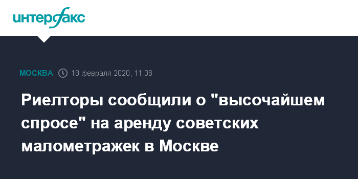 Москва. 18 февраля. INTERFAX.RU - Советские малометражки в Москве в среднем арендуют в течение одного часа после появления объявления, подсчитали в "ИНКОМ-Недвижимость".