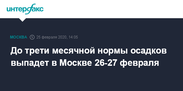 До трети месячной нормы осадков выпадет в Москве 26-27 февраля