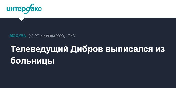 Москва. 27 февраля. INTERFAX.RU - Журналист и телеведущий Дмитрий Дибров сообщил, что выписался из больницы, куда попал с микроинсультом.