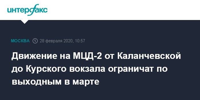 "В выходные дни марта (1, 7, 8, 14, 15, 21, 22, 28 и 29 марта), с 9:40 до 13:40 участок Москва-Каланчевская - Курский вокзал будет закрыт для движения поездов. Технологические "окна" необходимы для проведения комплекса сложных работ в рамках реализации проекта Московские центральные диаметры", - говорится в сообщении.