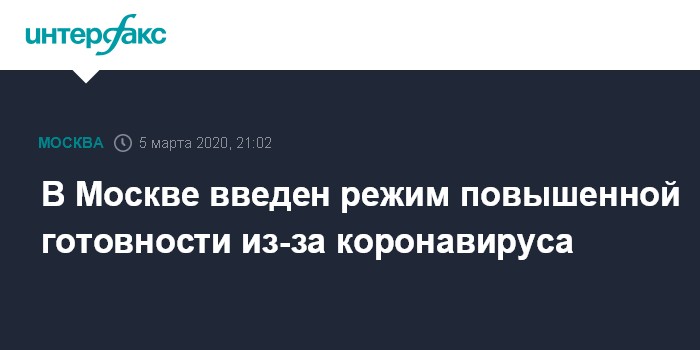 Москва. 5 марта. INTERFAX.RU - Мэр столицы Сергей Собянин подписал указ о введении режима повышенной готовности в связи с угрозой распространения в Москве новой коронавирусной инфекции.