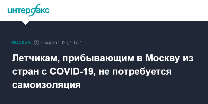 Летчикам, прибывающим в Москву из стран с COVID-19, не потребуется самоизоляция