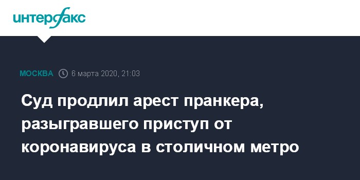 Суд продлил арест пранкера, разыгравшего приступ от коронавируса в столичном метро