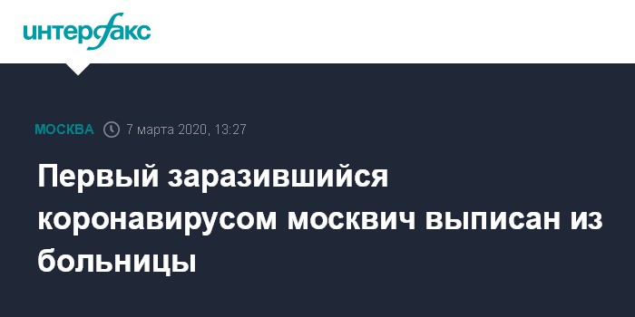 Первый заразившийся коронавирусом москвич выписан из больницы