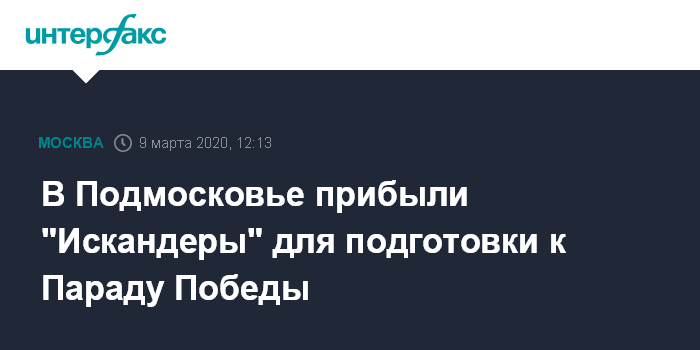 Москва. 9 марта. INTERFAX.RU - Расчеты оперативно-тактических ракетных комплексов "Искандер-М" Западного военного округа (ЗВО) переброшены в Московскую область для участия в Параде Победы, сообщила в понедельник пресс-служба ЗВО.