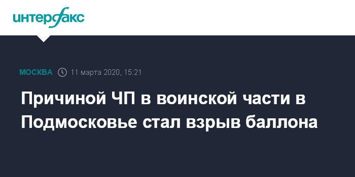 По данным пресс-службы, "11 марта в воинской части, дислоцированной в Луховицком районе Московской области, во время проведения хозяйственных работ по сортировке металлолома произошло разрушение корпуса баллона, находящегося под давлением".
