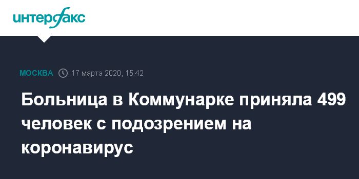 Больница в Коммунарке приняла 499 человек с подозрением на коронавирус