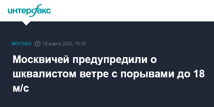 Москва. 19 марта. INTERFAX.RU - Столичное метеобюро выпустило предупреждение об усилении ветра в городе до вечера четверга, 19 марта.