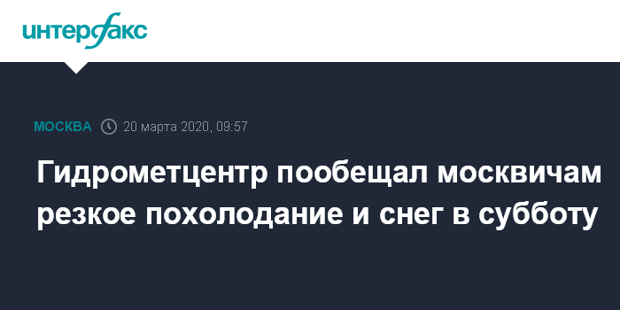 Москва. 20 марта. INTERFAX.RU - Холодный атмосферный фронт пройдет через Московский регион в ночь на субботу, 21 марта: ожидается небольшой снег, а потом температура значительно понизится, сообщил научный руководитель Гидрометцентра России Роман Вильфанд.
