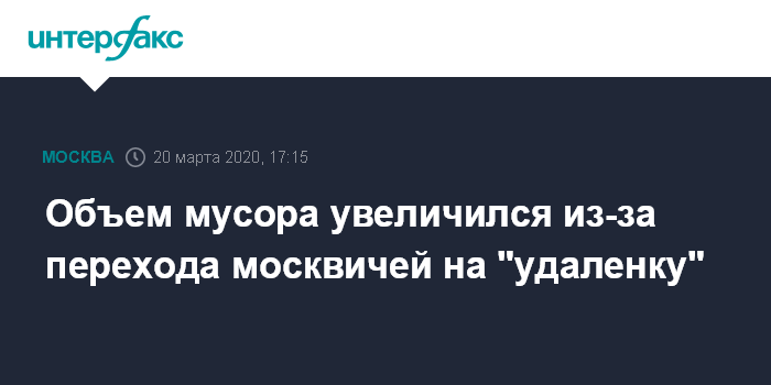Объем мусора увеличился из-за перехода москвичей на "удаленку"