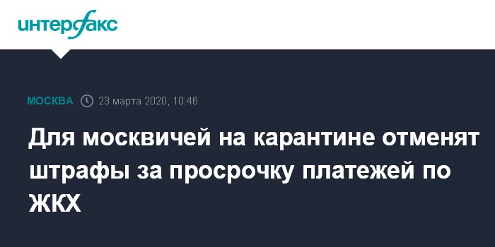 Москва. 23 марта. INTERFAX.RU - В Москве будут отменены штрафы на просроченные платежи по жилищно-коммунальным услугам, сообщил мэр столицы Сергей Собянин.