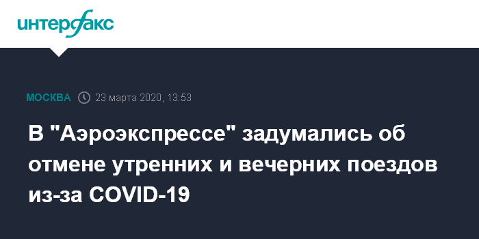Москва. 23 марта. INTERFAX.RU - "Аэроэкспресс" на фоне пандемии коронавируса может сократить график движения поездов из-за уменьшения пассажиропотока аэропортов московского авиаузла, сообщил заместитель генерального директора - операционный директор компании Михаил Ковальский.