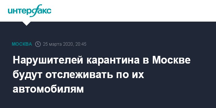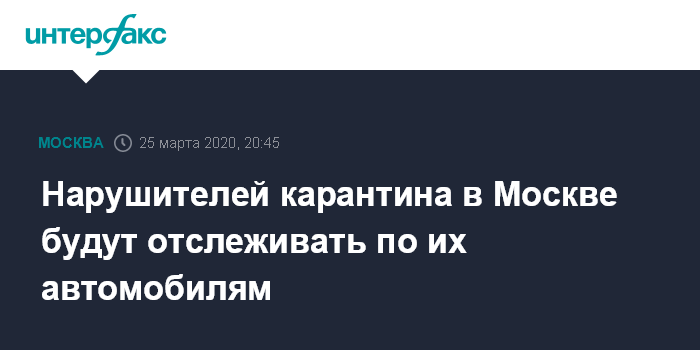 Москва. 25 марта. INTERFAX.RU - В столице за гражданами, которые вернулись из-за границы, организуют контроль, чтобы пресечь нарушение карантинного режима, в частности, их передвижения отслеживают по их автомобилям, заявил мэр Москвы Сергей Собянин.