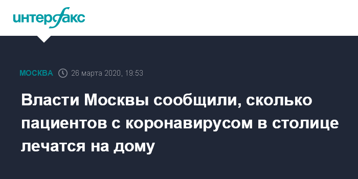 Москва. 26 марта. INTERFAX.RU - На сегодняшний день в Москве 546 заразившихся коронавирусной инфекцией, около ста лечатся на дому, сообщила заместитель мэра столицы Анастасия Ракова.