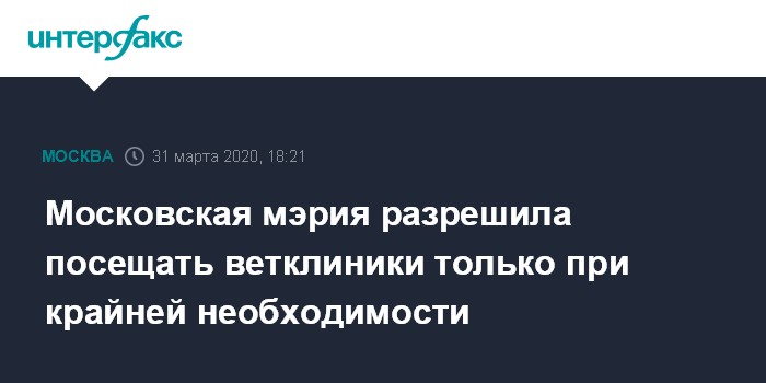 Московская мэрия разрешила посещать ветклиники только при крайней необходимости