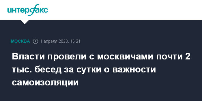 Власти провели с москвичами почти 2 тыс. бесед за сутки о важности самоизоляции