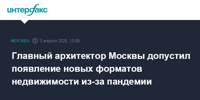 Москва. 2 апреля. INTERFAX.RU - Пандемия коронавируса может подтолкнуть к созданию новых форматов городской недвижимости, считает главный архитектор Москвы Сергей Кузнецов.