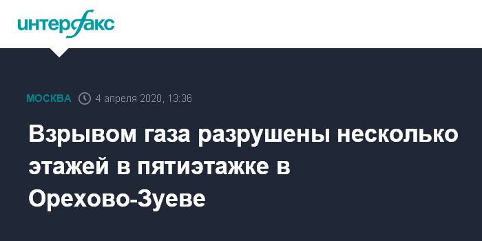 Ранее в субботу осведомленный источник сообщил "Интерфаксу", что в пятиэтажном доме в Орехово-Зуеве взорвался газ, произошло обрушение нескольких этажей. По предварительным данным, на нижних этажах есть погибшие.