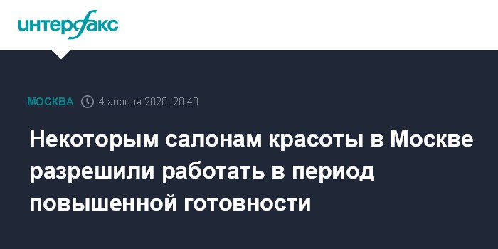 Москва. 4 апреля. INTERFAX.RU - Салоны красоты, косметические и СПА-центры и подобные организации смогут продолжить работу в период с 5 апреля по 1 мая, если у них есть лицензия на медицинскую деятельность.