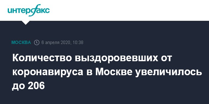 Количество выздоровевших от коронавируса в Москве увеличилось до 206