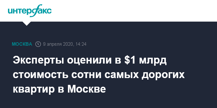 Москва. 9 апреля. INTERFAX.RU - Сто самых дорогих квартир в российской столице суммарно стоят $1 млрд по итогам первого квартала текущего года, подсчитали эксперты компании Savills.