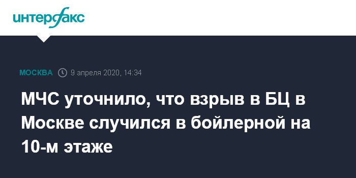 МЧС уточнило, что взрыв в БЦ в Москве случился в бойлерной на 10-м этаже