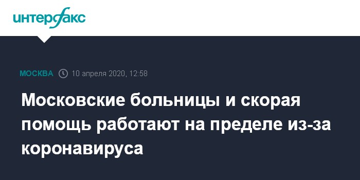 Москва. 10 апреля. INTERFAX.RU - Столичные больницы и скорая помощь работают на пределе, заявила заместитель мэра Москвы Анастасия Ракова.