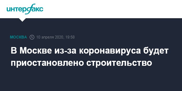"Временно приостановить с 13 апреля 2020 г. по 19 апреля 2020: выполнение строительных (ремонтных) работ, за исключением строительства объектов медицинского назначения, а также работ непрерывного цикла, связанных со строительством и обслуживанием объектов метрополитена, инфраструктуры наземного общественного транспорта, железнодорожного транспорта и аэропортов", - говорится в указе мэра Москвы Сергея Собянина, обнародованном в пятницу.