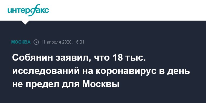 Собянин заявил, что 18 тыс. исследований на коронавирус в день не предел для Москвы