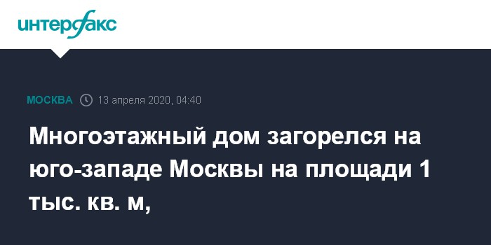Москва. 13 апреля. INTERFAX.RU - Пожар охватил верхние этажи жилого дома на западе Москвы, сообщили "Интерфаксу" в пресс-службе столичного главка МЧС РФ.