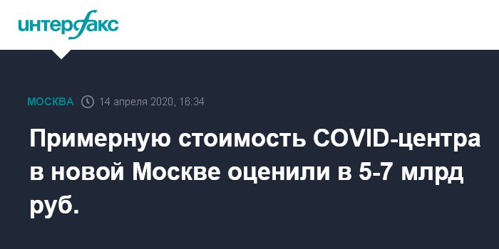 Примерную стоимость COVID-центра в новой Москве оценили в 5-7 млрд руб.