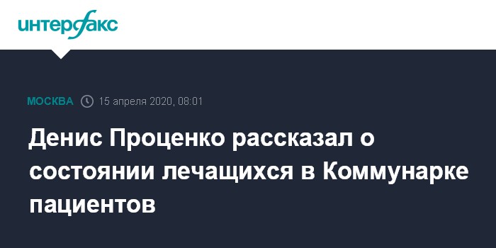 Денис Проценко рассказал о состоянии лечащихся в Коммунарке пациентов