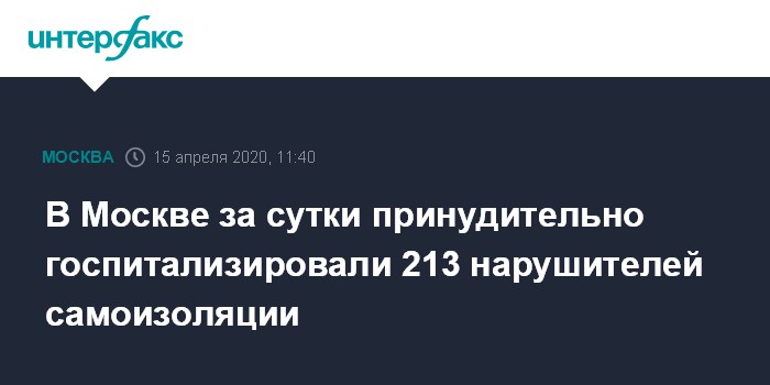 Москва. 15 апреля. INTERFAX.RU - В Москве за сутки оштрафованы 213 нарушителей карантина, которые были должны самоизолироваться и лечиться дома, сообщила пресс-служба мэрии со ссылкой на данные Главного контрольного управления (Главконтроля).