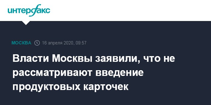 Москва. 16 апреля. INTERFAX.RU - Власти Москвы не рассматривают вариант введения продуктовых карточек в городе.
