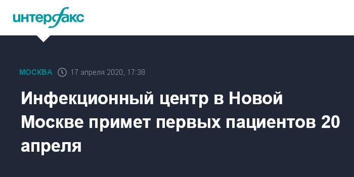 Инфекционный центр в Новой Москве примет первых пациентов 20 апреля