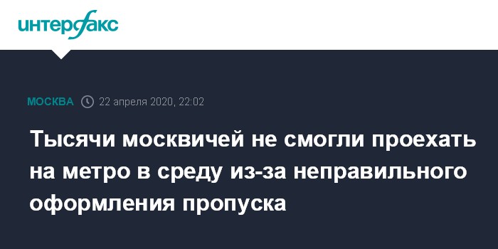 Москва. 22 апреля. INTERFAX.RU - Около 2,5 тысяч человек не смогли проехать в столичном метро в среду из-за неправильного оформления пропуска, сообщили "Интерфаксу" в пресс-службе учреждения "Организатор перевозок".