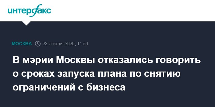 В мэрии Москвы отказались говорить о сроках запуска плана по снятию ограничений с бизнеса