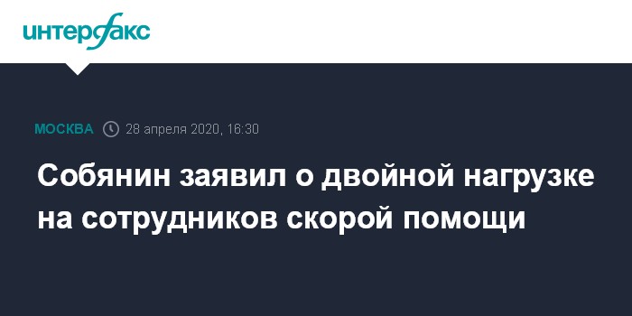 Москва. 28 апреля. INTERFAX.RU - С начала пандемии на сотрудников службы скорой помощи Москвы легла двойная нагрузка, отметил мэр города Сергей Собянин.