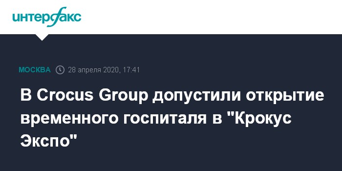 Москва. 28 апреля. INTERFAX.RU - Госпиталь для больных коронавирусом может разместиться на территории международного выставочного центра "Крокус Экспо" в Москве, рассказали "Интерфаксу" в пресс-службе ГК Crocus Group.