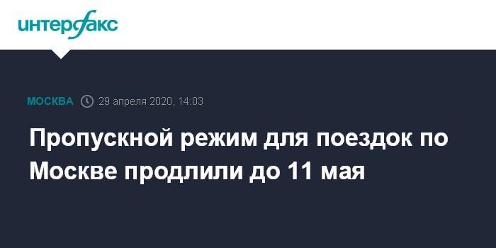 Москва. 29 апреля. INTERFAX.RU - В соответствии с новым указом мэра Москвы Сергея Собянина действие пропускного режима для поездок по Москве продлевается по 11 мая.