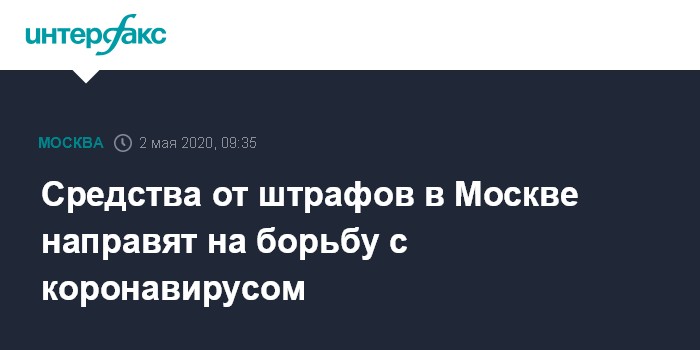 Москва. 2 мая. INTERFAX.RU - Все средства, полученные от штрафов в Москве, будут направлены на борьбу с коронавирусом, на медицину, сообщил мэр столицы Сергей Собянин.