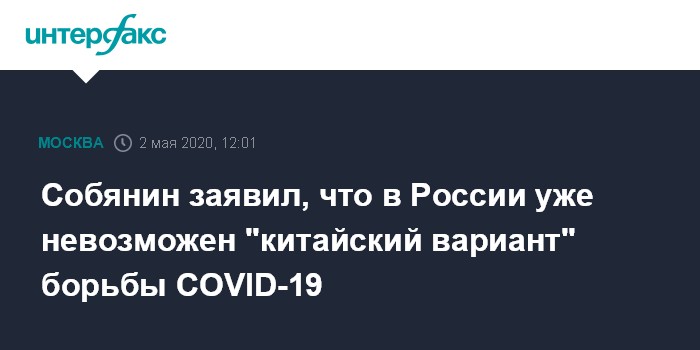 Собянин заявил, что в России уже невозможен "китайский вариант" борьбы COVID-19
