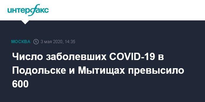 Москва. 3 мая. INTERFAX.RU - В Подольске и Мытищах число заболевших превысило 600 человек, сообщает региональный штаб по контролю и мониторингу ситуации с коронавирусом.