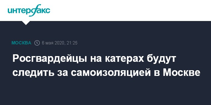 Москва. 6 мая. INTERFAX.RU - Катера Росгвардии приступили к патрулированию акваторий столицы, особое внимание будут уделять лесопарковым зонам, сообщили "Интерфаксу" в Центральном федеральном округе ведомства.
