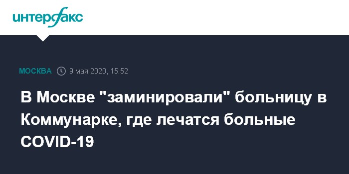 Москва. 9 мая. INTERFAX.RU - Неизвестные сообщили в правоохранительные органы о взрывном устройстве, якобы заложенном на территории московской больницы в Коммунарке, в которой лечатся больные COVID-19, сообщил "Интерфаксу" в субботу информированный источник.