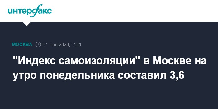 По данным сервиса, индекс самоизоляции в Москве на 9:00 составляет 3,6.