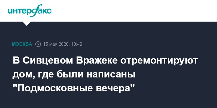В Сивцевом Вражеке отремонтируют дом, где были написаны "Подмосковные вечера"