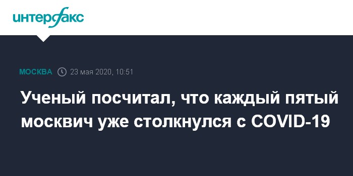"Проведенное исследование позволяет нам сказать, на основе данных, которые прозвучали (глава Депздрава Москвы Алексей Хрипун озвучил, что у 12,5% москвичей есть антитела к коронавирусу - ИФ), что примерно 15-20% населения города Москвы уже столкнулись с данным возбудителем", - сказал он на пресс-конференции в субботу.