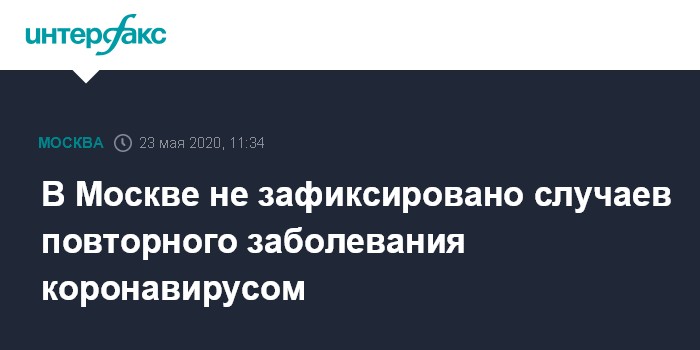 В Москве не зафиксировано случаев повторного заболевания коронавирусом